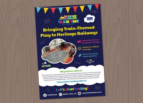We created these pop up banners and party invitiations for Train Time parties, a stay and play event in Stourbridge that also caters for birthday parties.The banners retract down into portable, lightweight cartridges, perfect for transporting. The party invites are a fun design, designed to look like you’ve been given a train ticket to the... Read more